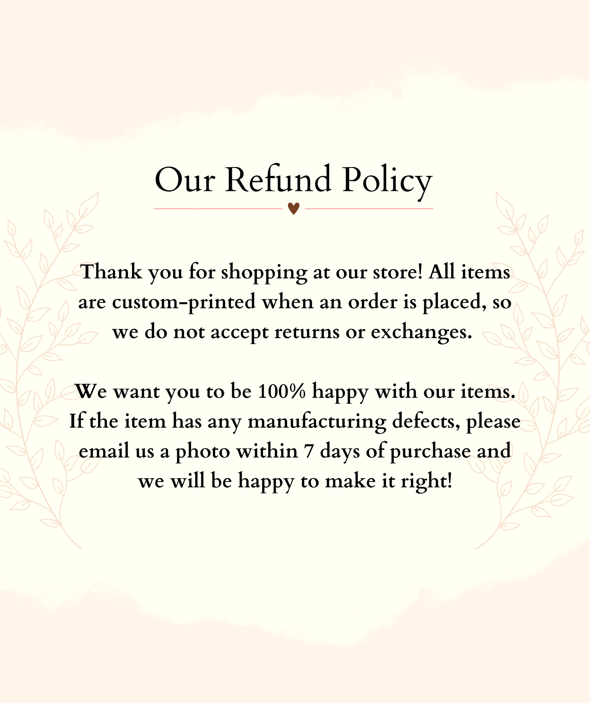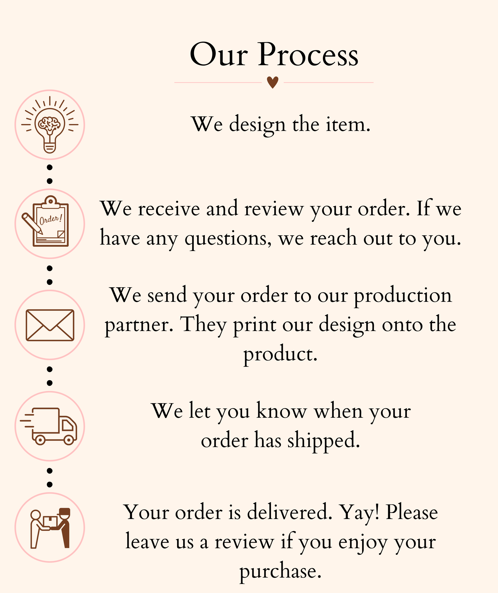 A special note: The images that you see are mockups, meaning that they are pictures showing what the item should look like in use. All of the items in our store are made-to-order, meaning that we create our own original designs and send them to a production partner that prints the design onto the ordered product(s). If you have any questions about your order, feel free to send us a message at artistrybyherr@gmail.com.